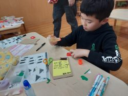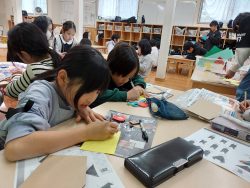 絵馬の台紙に、だるまや馬を作って張り付けていきます。