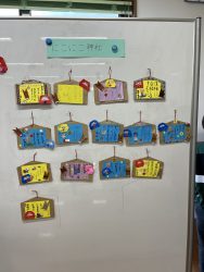 周りにも飾り付けいっぱいで、華やかな絵馬に仕上がりました。