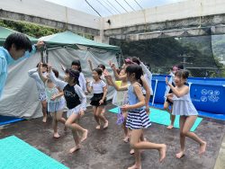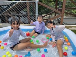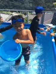 お友達と水をかけ合いッコしたり、水鉄砲で楽しみました。